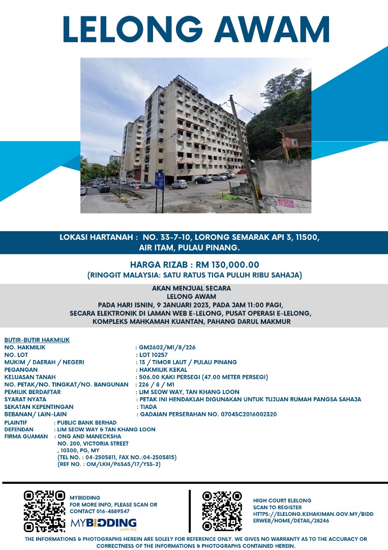 RM340,000 | Dec 02, 2022 | Fri